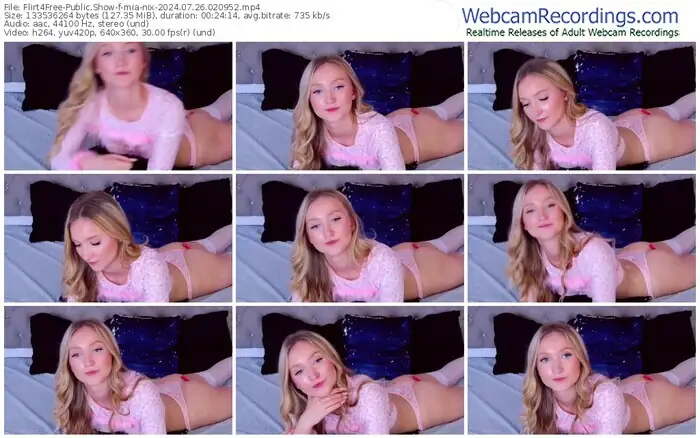 There are a total of 2,277 recordings (1,138 hours) of mia-nix from Flirt4Free available below.