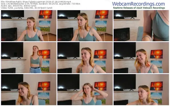 There are a total of 14 recordings (10 hours) of gladys-garman from Flirt4Free available below.