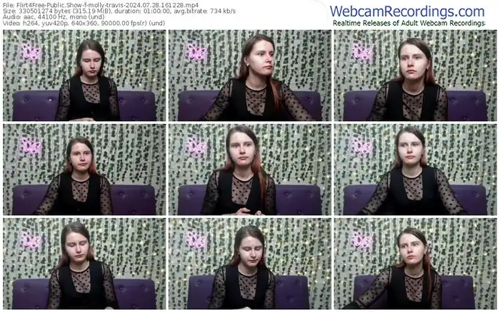There are a total of 1,093 recordings (543 hours) of molly-travis from Flirt4Free available below.
