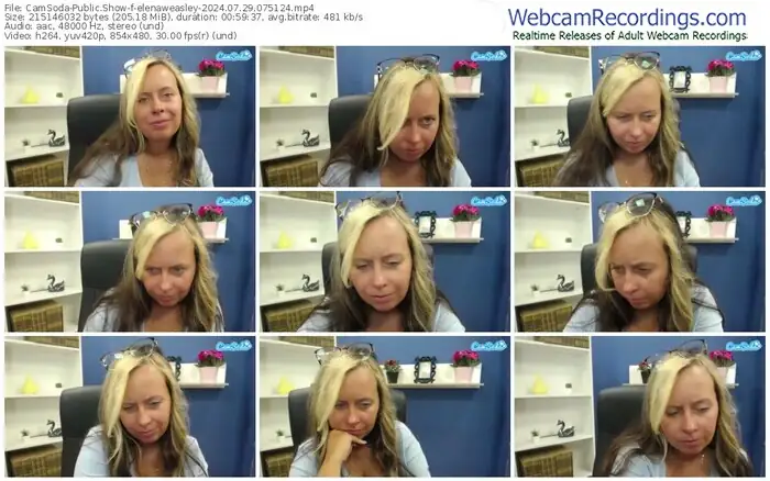 There are a total of 8 recordings (6 hours) of elenaweasley from CamSoda available below.