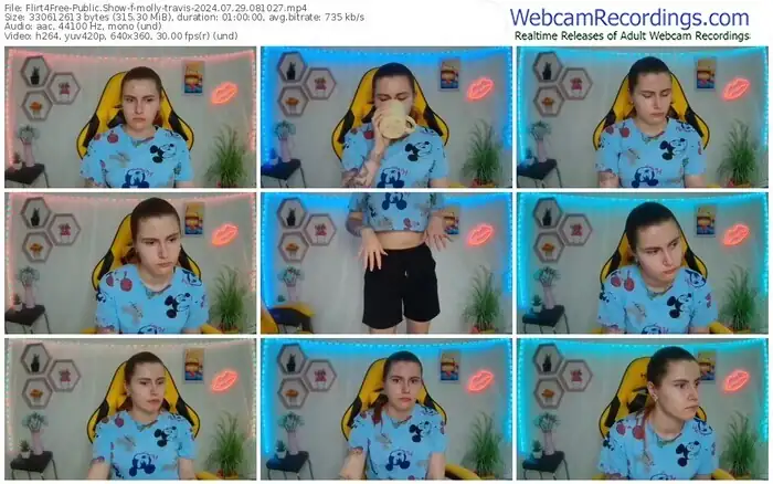 There are a total of 1,093 recordings (543 hours) of molly-travis from Flirt4Free available below.