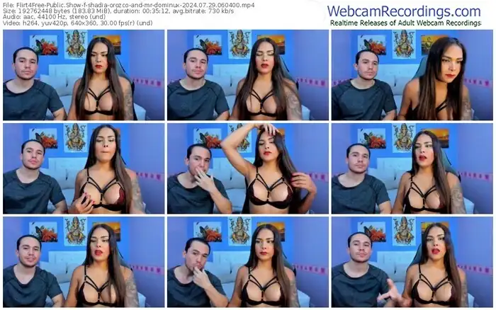 There are a total of 448 recordings (181 hours) of shadia-orozco-and-mr-dominux from Flirt4Free available below.
