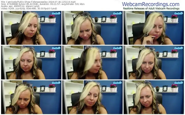 There are a total of 8 recordings (6 hours) of elenaweasley from CamSoda available below.