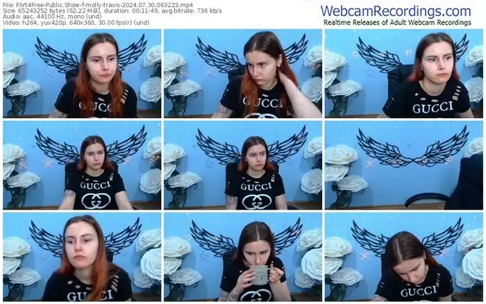 There are a total of 1,093 recordings (543 hours) of molly-travis from Flirt4Free available below.