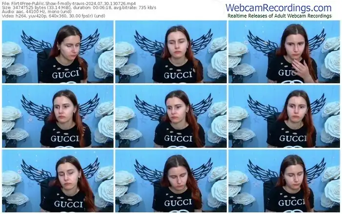 There are a total of 1,093 recordings (543 hours) of molly-travis from Flirt4Free available below.