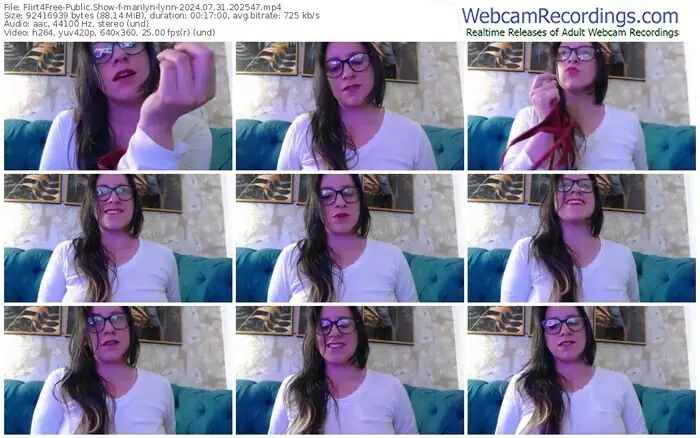 There are a total of 2,733 recordings (1,693 hours) of marilyn-lynn from Flirt4Free available below.