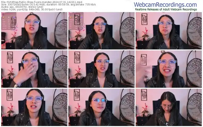 There are a total of 489 recordings (345 hours) of vero-mendez from Flirt4Free available below.