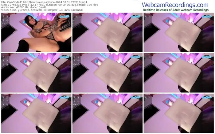 There are a total of 329 recordings (281 hours) of alessiadouce from CamSoda, Cam4 and Stripchat available below.