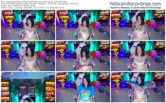 There are a total of 935 recordings (744 hours) of ambarevans from CamSoda, MFC, Bongacams, and Stripchat available below.