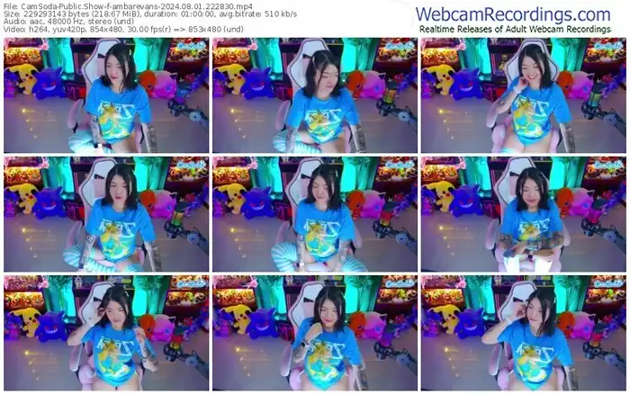 There are a total of 935 recordings (744 hours) of ambarevans from CamSoda, MFC, Bongacams, and Stripchat available below.