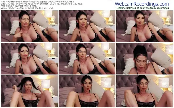 There are a total of 3,070 recordings (1,562 hours) of metisha-caprice from Flirt4Free available below.