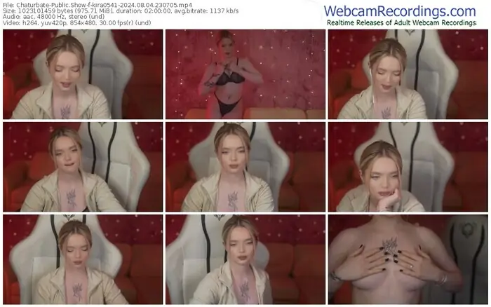 There are a total of 3,702 recordings (3,256 hours) of kira0541 from Chaturbate available below.