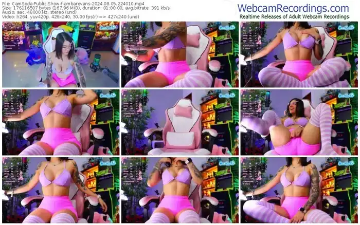 There are a total of 935 recordings (744 hours) of ambarevans from CamSoda, MFC, Bongacams, and Stripchat available below.