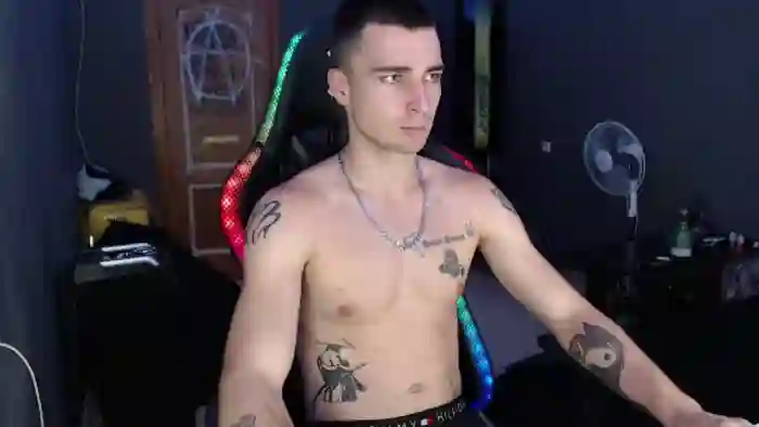 His birthday is April 10th 2004 making him 20 years old, and the average age of models on Flirt4Free is 25—making him one of the younger models. His height is 186cm, and his weight is 72kg. He identifies his ethnicity as mixed. He has a trimmed pubic hair, muscular body with blue eyes and short black hair.His body art includes tattoo(s).