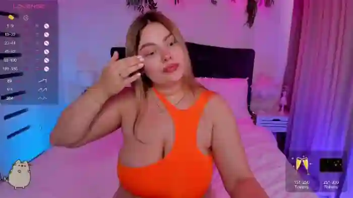Her birthday is July 9th 1997 making her 27 years old, and the average age of models on Flirt4Free is 25—making her one of the older models. Her height is 170cm, and her weight is 65kg. She identifies her ethnicity as caucasian. She has a shaved pubic hair, and dd cup breasts on a average body with hazel eyes and shoulder blonde hair.