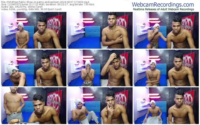 There are a total of 184 recordings (124 hours) of patric-and-jackson from Flirt4Free available below.