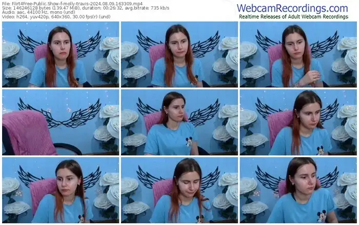 There are a total of 1,093 recordings (543 hours) of molly-travis from Flirt4Free available below.
