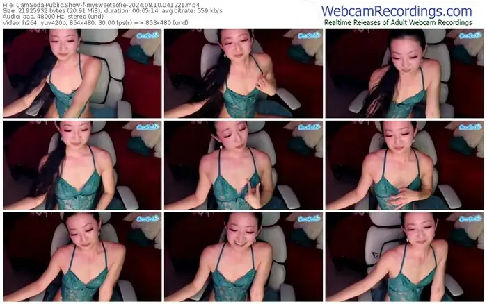 There are a total of 678 recordings (495 hours) of mysweetsofie from CamSoda, Stripchat and Bongacams available below.