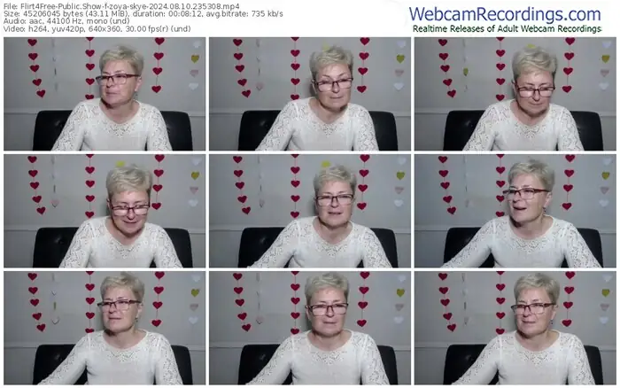There are a total of 800 recordings (243 hours) of zoya-skye from Flirt4Free available below.