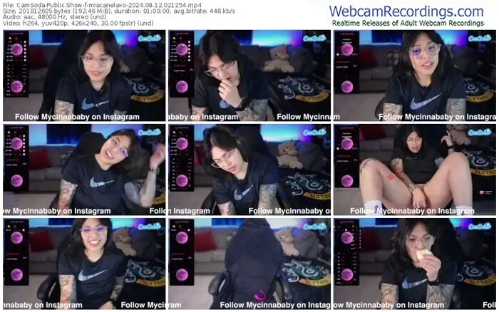 There are a total of 281 recordings (205 hours) of miacanelaxo from CamSoda and Bongacams available below.