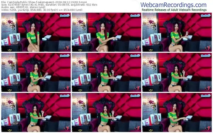 There are a total of 1,003 recordings (545 hours) of salomepaez1 from CamSoda available below.