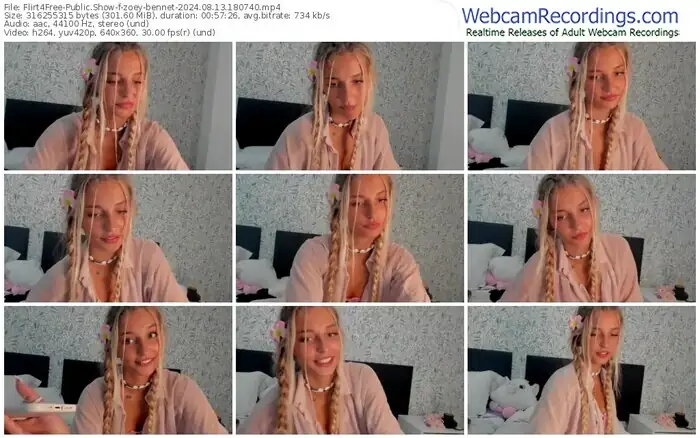 There are a total of 381 recordings (193 hours) of zoey-bennet from Flirt4Free available below.