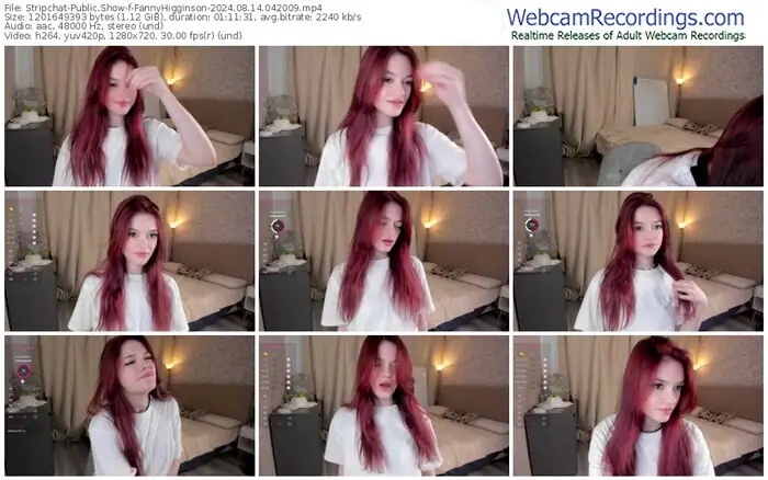 There are a total of 22 recordings (15 hours) of FannyHigginson from Stripchat available below.