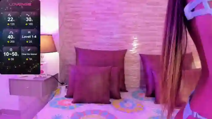 Her birthday is January 11th 2003 making her 22 years old, and the average age of models on Flirt4Free is 25—making her one of the younger models. Her height is 160cm, and her weight is 61kg. She identifies her ethnicity as hispanic. She has a trimmed pubic hair, and b cup breasts on a muscular body with brown eyes and long brown hair.Her body art includes piercings, tattoo(s).