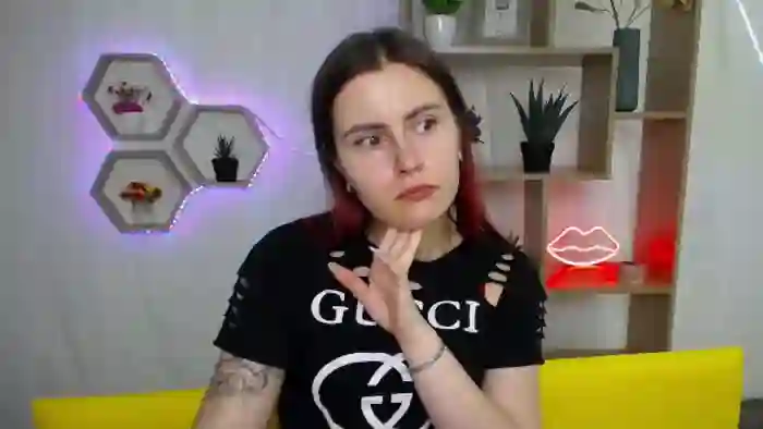Her birthday is October 9th 2001 making her 24 years old, and the average age of models on Flirt4Free is 25—making her one of the younger models. Her height is 167cm, and her weight is 51kg. She identifies her ethnicity as other. She has a shaved pubic hair, and b cup breasts on a athletic body with blue eyes and long brown hair.Her body art includes piercings, tattoo(s).