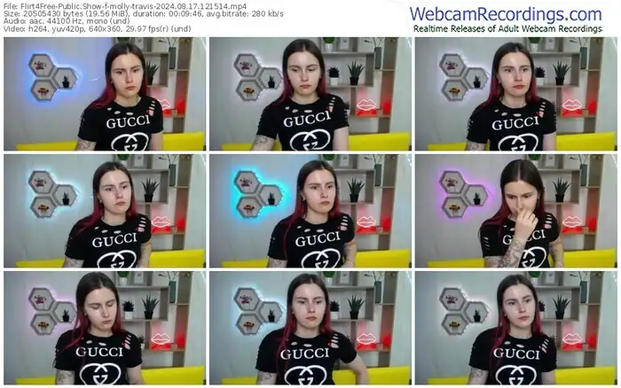 There are a total of 1,093 recordings (543 hours) of molly-travis from Flirt4Free available below.