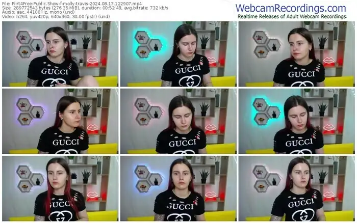 There are a total of 1,093 recordings (543 hours) of molly-travis from Flirt4Free available below.
