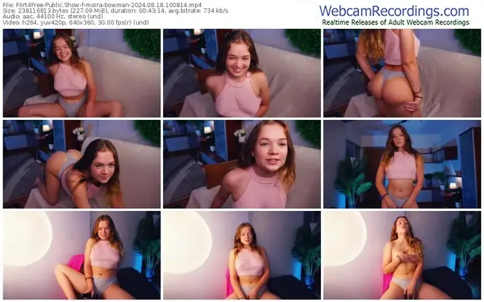 There are a total of 1,261 recordings (815 hours) of moira-bowman from Flirt4Free available below.