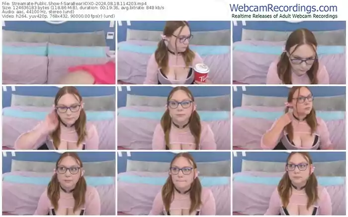 There are a total of 275 recordings (70 hours) of SaraBearXOXO from Streamate available below.