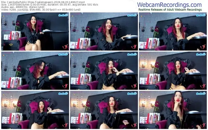 There are a total of 1,003 recordings (545 hours) of salomepaez1 from CamSoda available below.