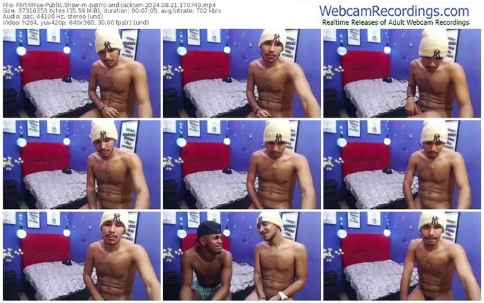 There are a total of 184 recordings (124 hours) of patric-and-jackson from Flirt4Free available below.