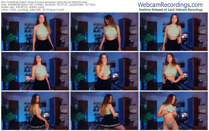 There are a total of 1,261 recordings (815 hours) of moira-bowman from Flirt4Free available below.