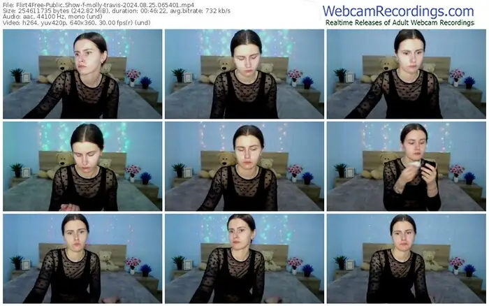 There are a total of 1,093 recordings (543 hours) of molly-travis from Flirt4Free available below.