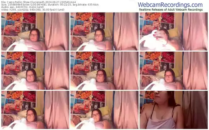 There are a total of 3,158 recordings (1,754 hours) of luciana45 from Cams available below.