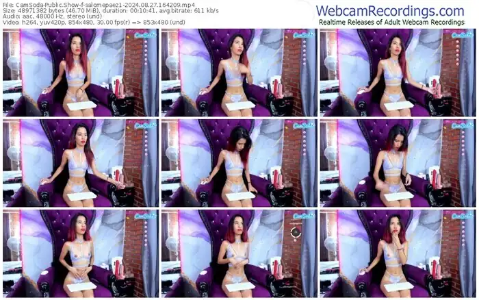 There are a total of 1,003 recordings (545 hours) of salomepaez1 from CamSoda available below.