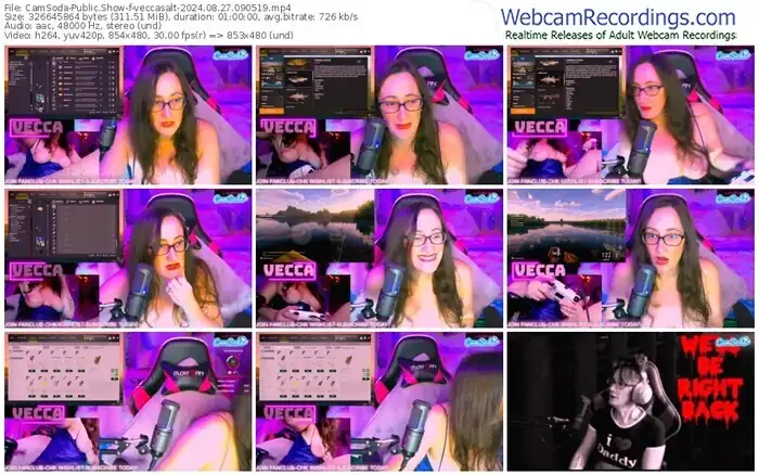 There are a total of 1,296 recordings (1,155 hours) of veccasalt from CamSoda available below.