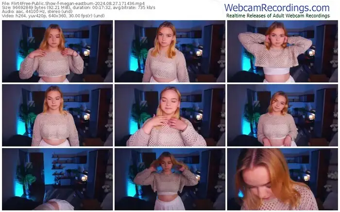 There are a total of 1,485 recordings (989 hours) of megan-eastburn from Flirt4Free available below.