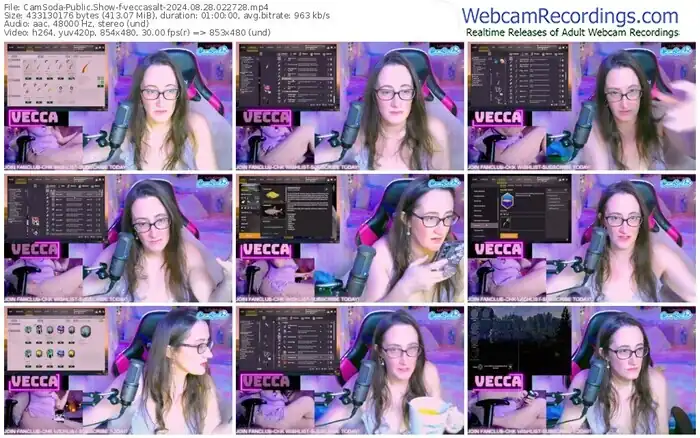 There are a total of 1,296 recordings (1,155 hours) of veccasalt from CamSoda available below.