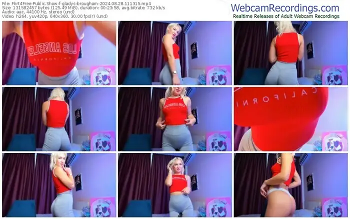 There are a total of 22 recordings (15 hours) of gladys-brougham from Flirt4Free available below.