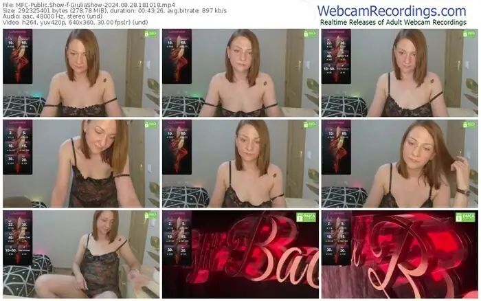 There are a total of 7 recordings (4 hours) of GiuliaShow from MyFreeCams and CamSoda available below.