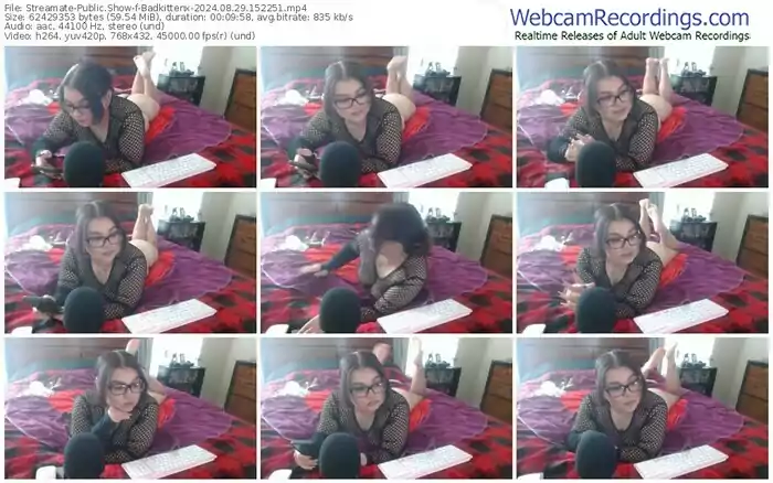 There are a total of 6 recordings (59 minutes) of Badkittenx from Streamate available below.