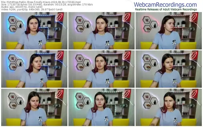 There are a total of 1,093 recordings (543 hours) of molly-travis from Flirt4Free available below.