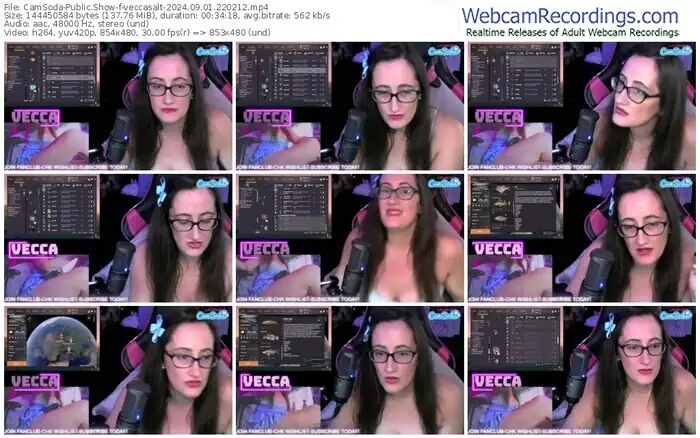There are a total of 1,296 recordings (1,155 hours) of veccasalt from CamSoda available below.