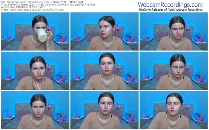 There are a total of 1,093 recordings (543 hours) of molly-travis from Flirt4Free available below.