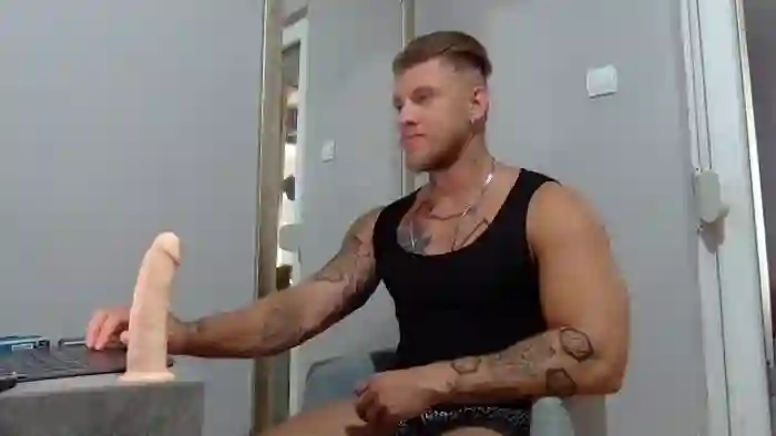 His birthday is April 20th 1999 making him 26 years old, and the average age of models on Flirt4Free is 25—making him one of the older models. His height is 185cm, and his weight is 101kg. He identifies his ethnicity as caucasian. He has a trimmed pubic hair, muscular body with green eyes and short blonde hair.His body art includes tattoo(s).