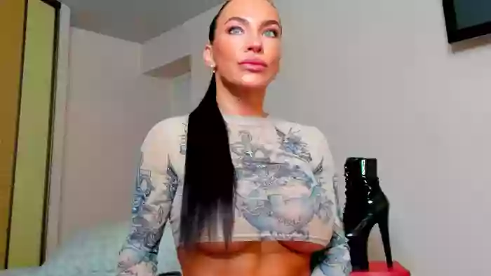 She is 34 years old, and the average age of models on Streamate is 30—making her one of the older models. Her height is 5'8, and her weight is 137 lbs. She identifies her ethnicity as white. She has a dd/e cup size breasts, bald pubic hair on a muscular body with blue eyes and brown hair.Her body art includes piercings.
